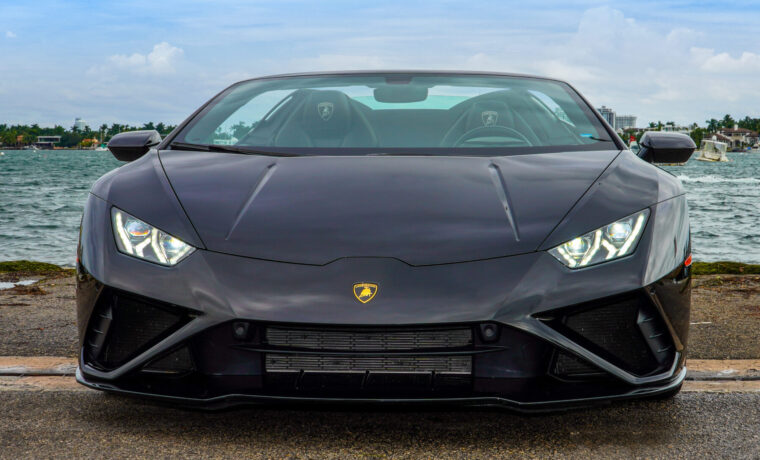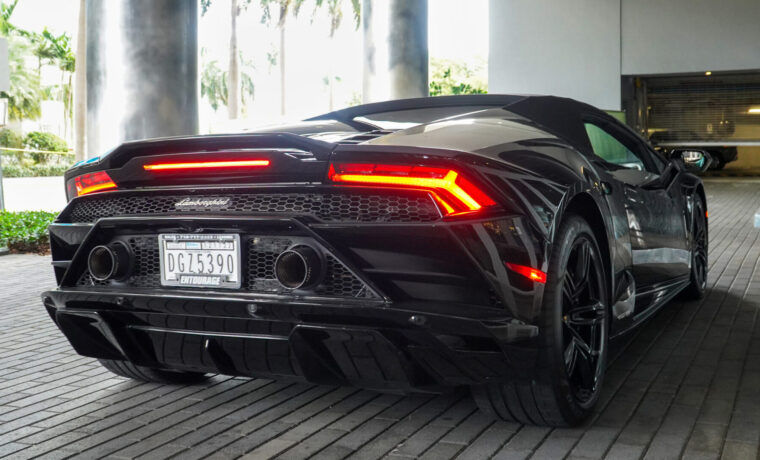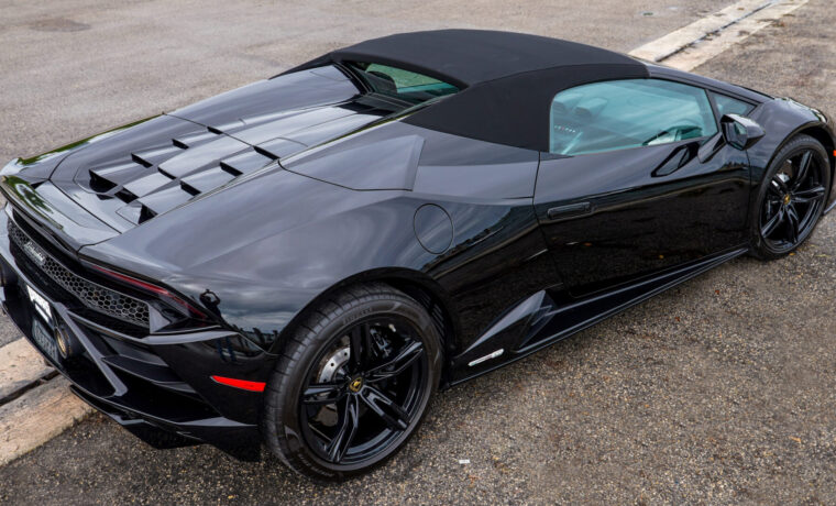 With the top down, the aerodynamic lines shine even more, creating a silhouette that’s equal parts aggressive and seductive. Black wheels, carbon-fiber accents, and Lamborghini’s signature curves finish the look with precision.